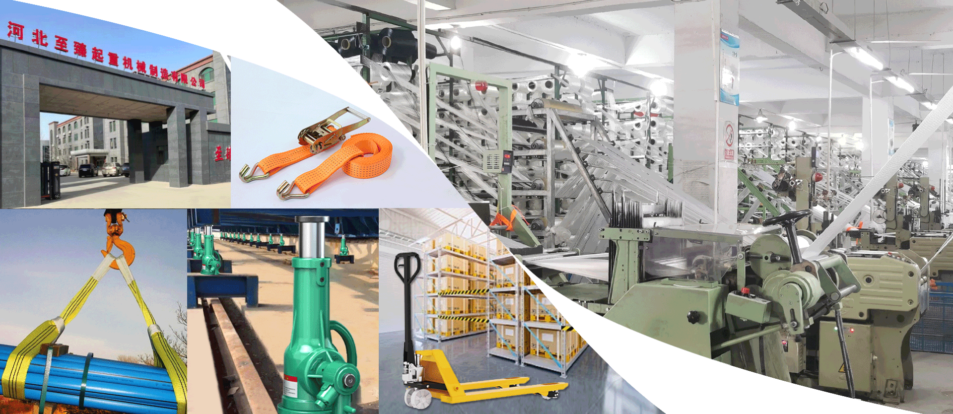 The main product covers webbing sling, round sling, ratchet strap, screw jack, pallet truck, chain hoist.
