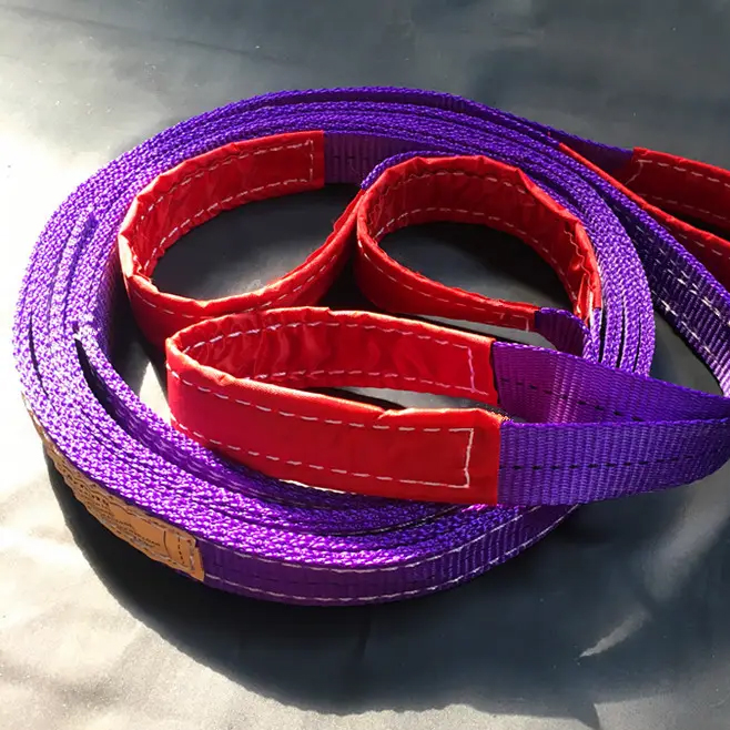 1T color: violet, width: 30mm, length: 1m-100m. JB/T8521.1-2007 and EN1492-1:2000 standard webbing sling. Material: high strength polyester yarn. Safety Factor: 4:1 5:1 6:1 7:1 8:1.