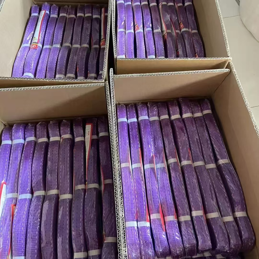 1T color: violet, width: 30mm, length: 1m-100m. JB/T8521.1-2007 and EN1492-1:2000 standard webbing sling. Material: high strength polyester yarn. Safety Factor: 4:1 5:1 6:1 7:1 8:1.