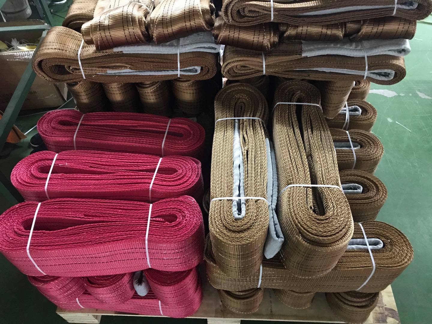 Product name: 6T Eye-eye Webbing Sling 6T color: brown, width: 150mm, length: 1m-100m. JB/T8521.1-2007 and EN1492-1:2000 standard webbing sling. Material: high strength polyester yarn. Safety Factor: 4:1 5:1 6:1 7:1 8:1.